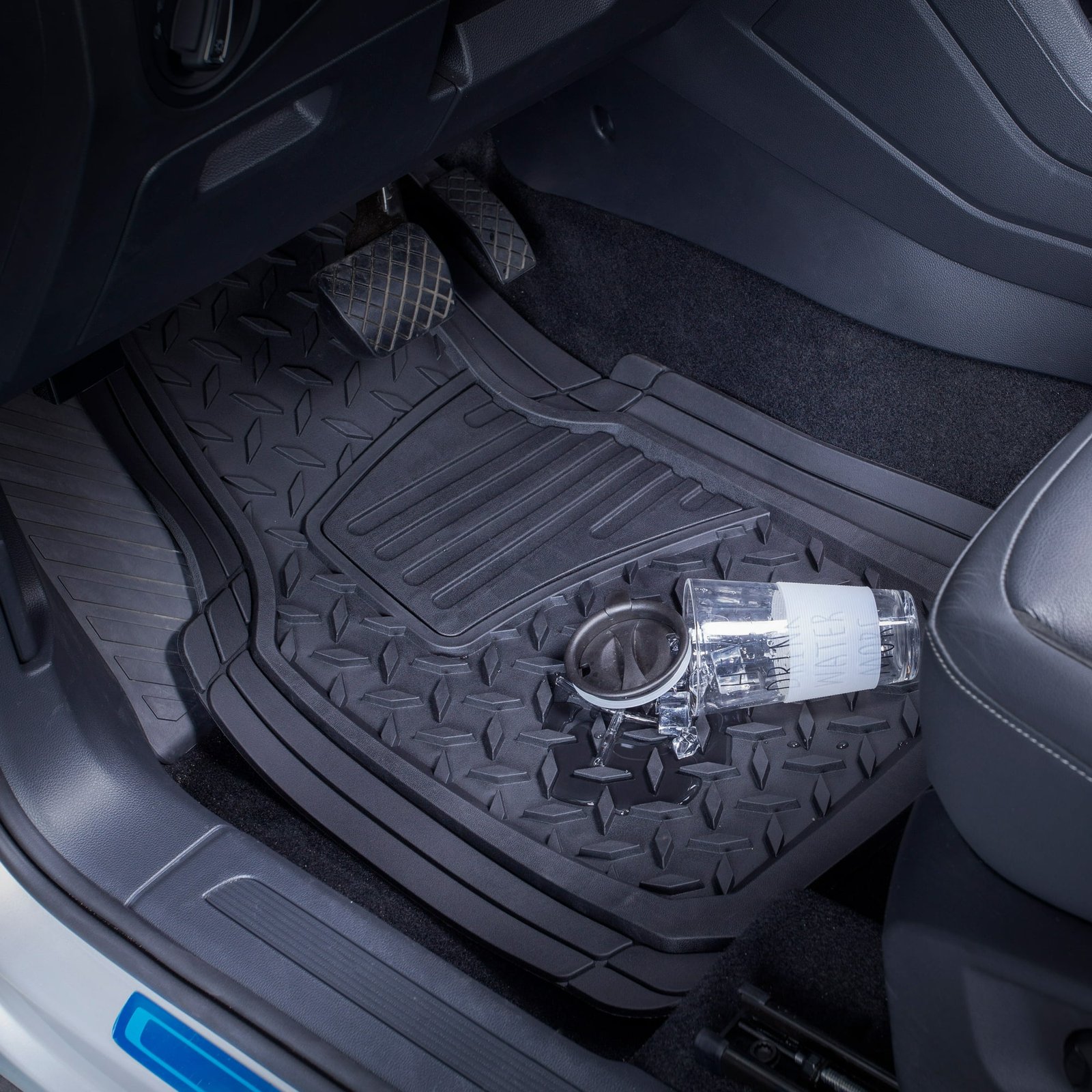 - Raised Grooves: Features raised grooves to trap dirt, mud, and water, keeping your vehicle clean.