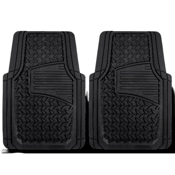 Auto Drive 2PC Rubber Floor Mats Diamond Plate Black- Universal Fit for Cars, Trucks,AD071714B