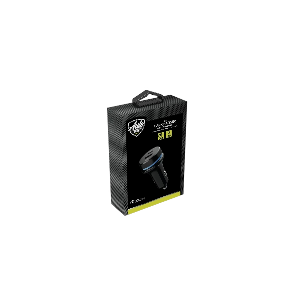 Auto Drive Quick Charge 3.0 Car Charger with Blue and Red Pulsing Light, 36W Charging Ports